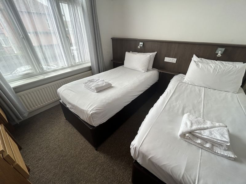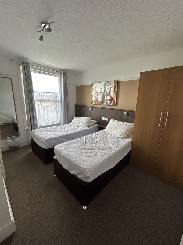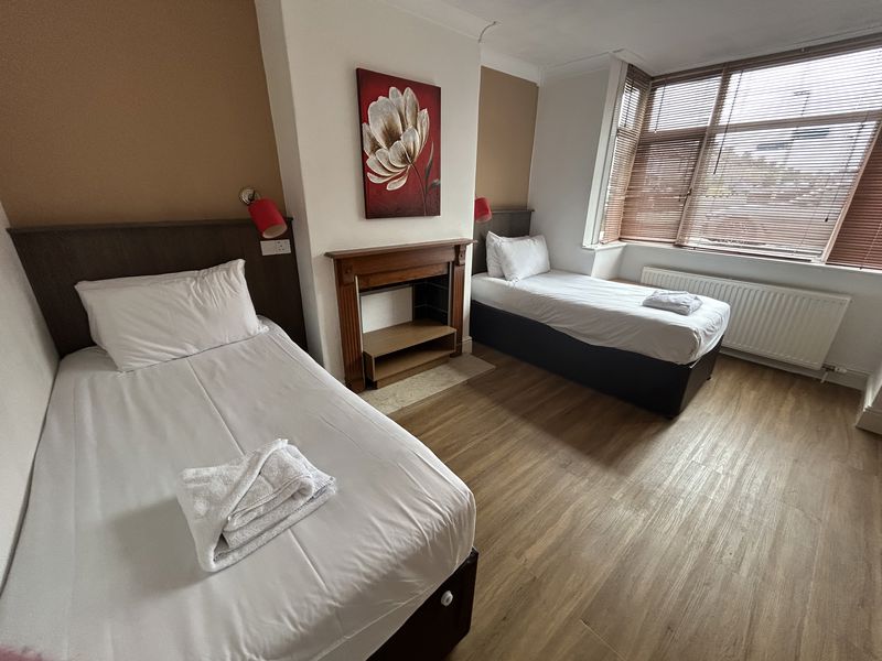 • ROOM DETAILS: All our rooms are fully furnished, and include a desk space for working from home. All bedding is in included. All doors are lockable and secure. Rooms located on the ground floor and First floor. There is one Ensuite room at this property. There are no TV’s / aerials in rooms at this house. All rooms (except the single) have two twin beds pushed together to create a king size bed, which are joined with a topper for great comfort.